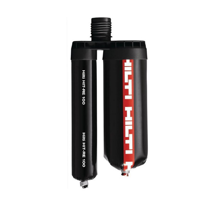 Hilti RE 100 là keo cấy thép Epoxy 2 thành phần không mùi, màu hồng nhạt khi hòa trộn. Keo chuyên dụng được dùng để khoan cấy thép/bulong vào kết cấu bê tông, sử dụng cho nhiều hạng mục như: neo cáp ngầm dưới biển, mở rộng mố, trụ cầu (mở rộng bề mặt cầu), tăng cường kích thước hình học, nâng cao khả năng chịu lực của kết cấu